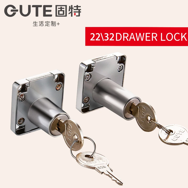 .Images of GUTE Bright Chrome Drawer Lock Zinc Alloy Furniture Office Desk Lock Safety Lock For Cabinet Cupboard Lock Cylinder With 2Keys