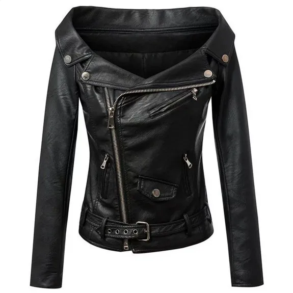 Related Product for jacket and Jacket Women Faux Leather PU Jacket Winter Autumn Black Motorcycle Jacket Outerwear Gothic Faux leather Coats Off Shoulder 2019