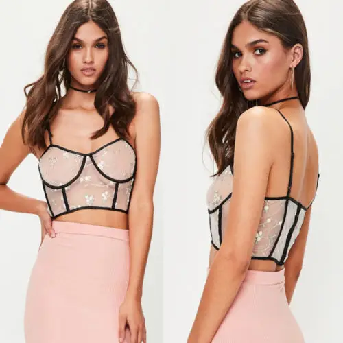 Related Product for internet and Internet Celebrity Sexy Women Floral Mesh Sheer See-through Crop Top Sleeveless Vest Party Clubwear T Shirt