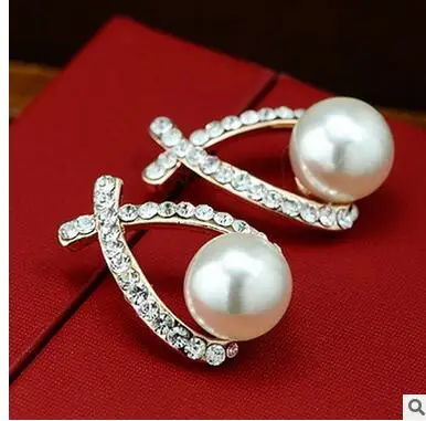 .Pictures of jewelry Brincos earring Pendientes pearl Korean female curve cross Korean jewelry non silver-jewelry brincos boucle